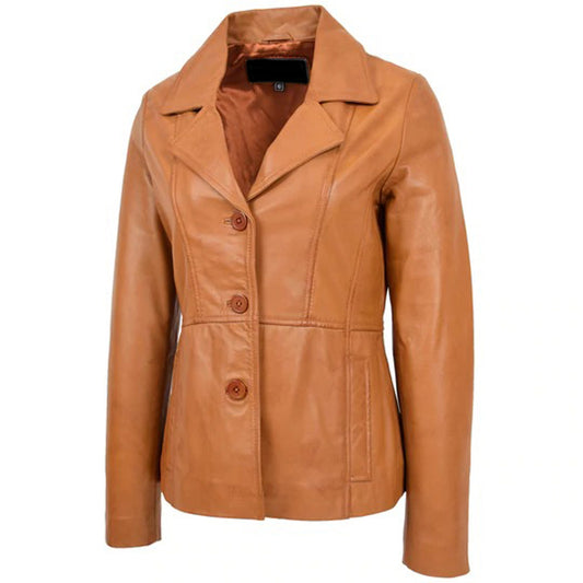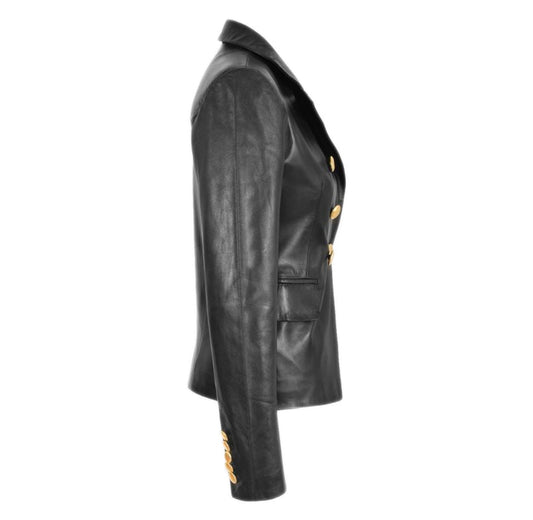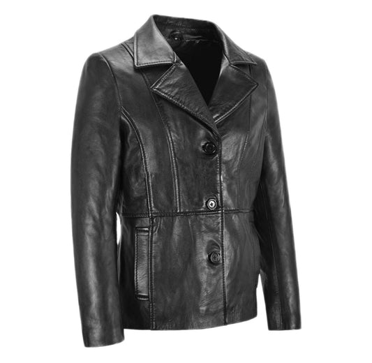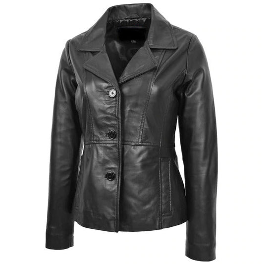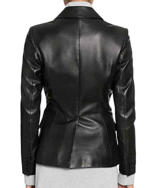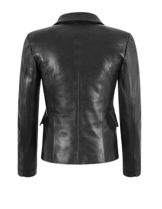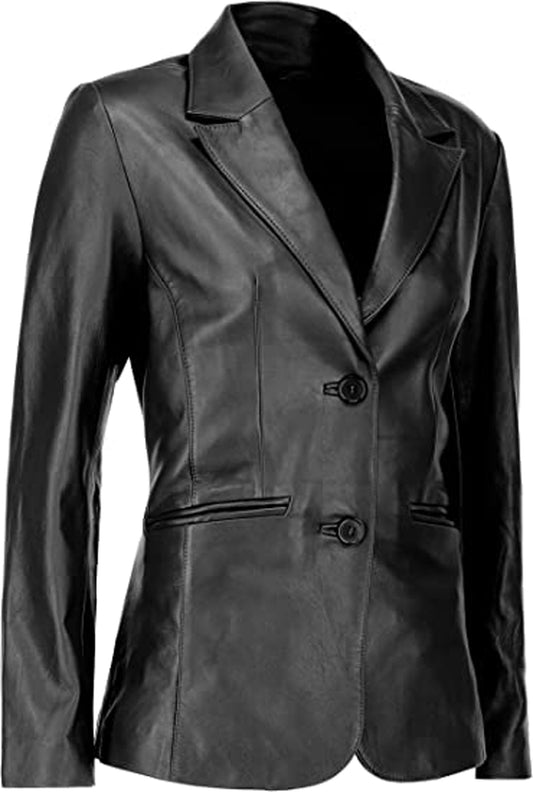 Women's Black Sheepskin Two Button Leather Blazer Coat