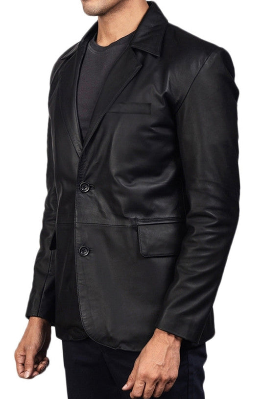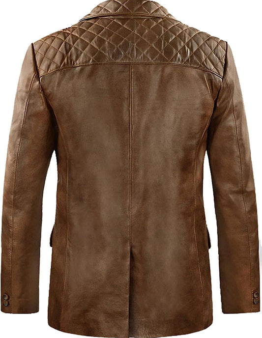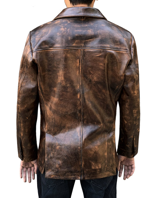 Antique Waxed Classic Sheepskin Leather Blazer Men