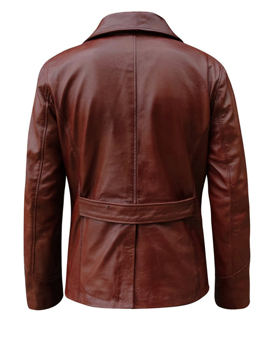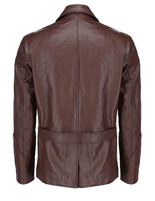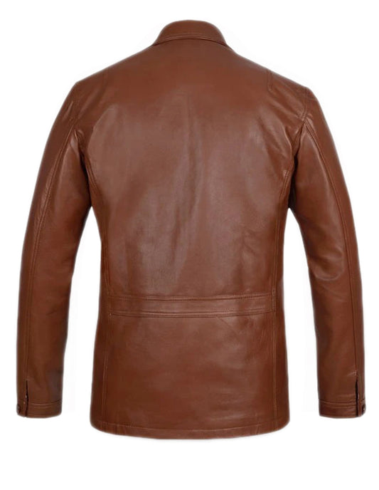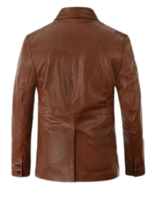 Brown Vintage Waxed Mens Classic Sheepskin Leather Blazer
