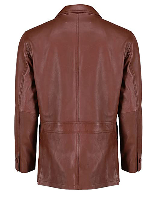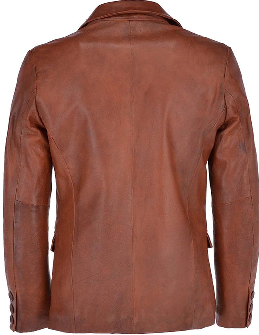 Brown Vintage Mens Classic Sheepskin Leather Blazer