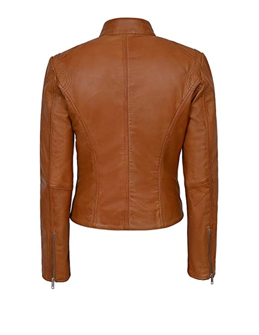 Women's Waxed Red Biker Motorcycle Sheepskin Leather Jacket