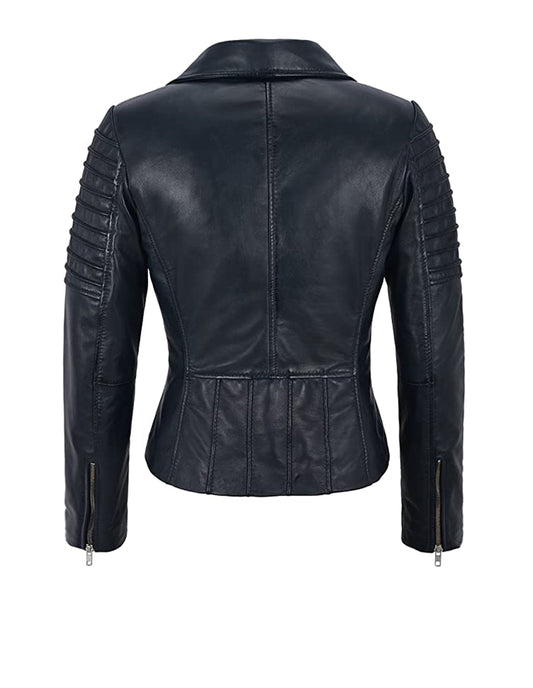 Women's Purple Biker Motorcycle Sheepskin Leather Jacket