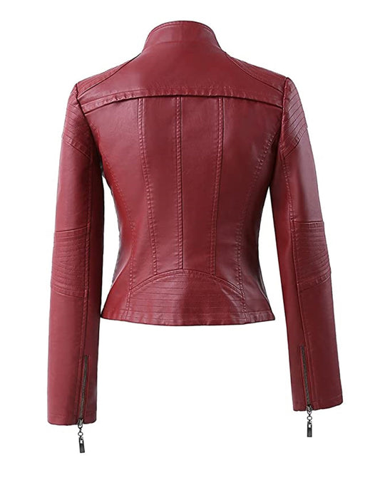 Women's Burgundy Biker Motorcycle Sheepskin Leather Jacket