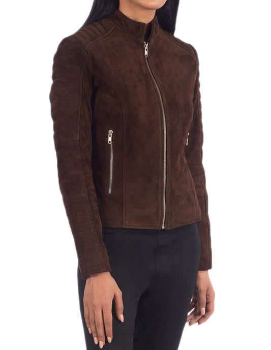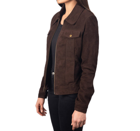 Brown Suede Leather Jacket For Women